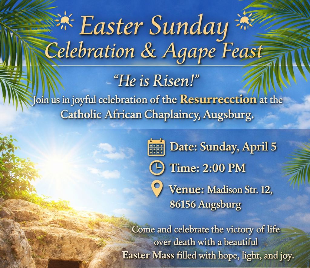 Am 4. Mai 2025 fand in der Kirche St. Bonifatius in Mannheim der zweite Katholikentag der Afrikaner-Seelsorge Süd-Deutschland statt. Fünf Gemeinden waren vertreten: Augsburg, Mannheim, Pforzheim, Regensburg und München. Bereits gegen 12 Uhr war die Ankunft der Reisebusse spürbar, mit denen die Teilnehmer:innen angereist waren. Der Pfarrer der katholischen Afrikanischen Gemeinde Mannheim, Pfarrer Dr. Chinedu... Continue reading→